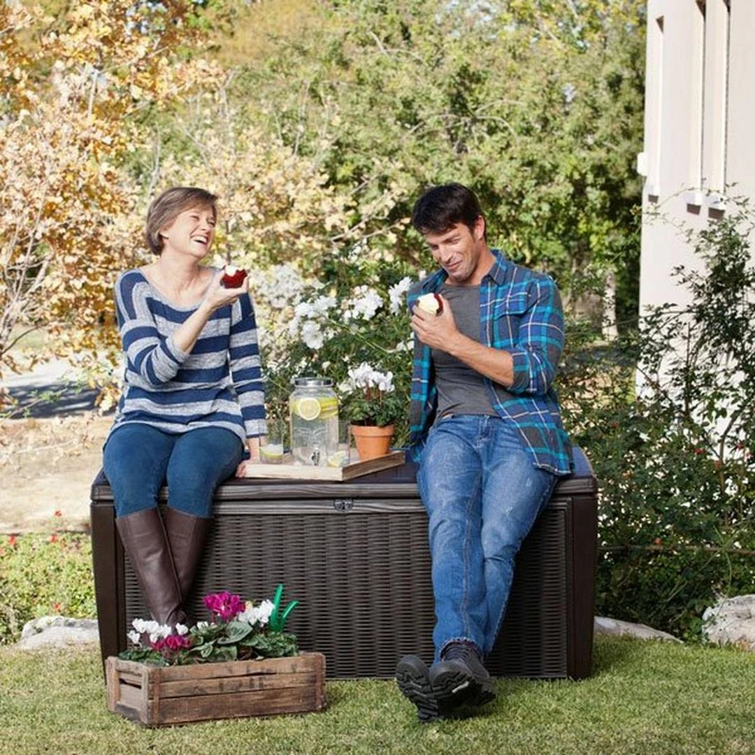 The Sumatra Deck Box is as practical as it is stylish, boasting a rattan-style texture and a spacious interior. Made out of durable and weather-resistant resin that will not rust, dent or peel, the box can withstand the elements perfectly and keep the contents protected at all times. The automatic opening system allows for easy access to the interior, while the extra large capacity of 135 G/511 L is ideal for storing large patio items and pool supplies.